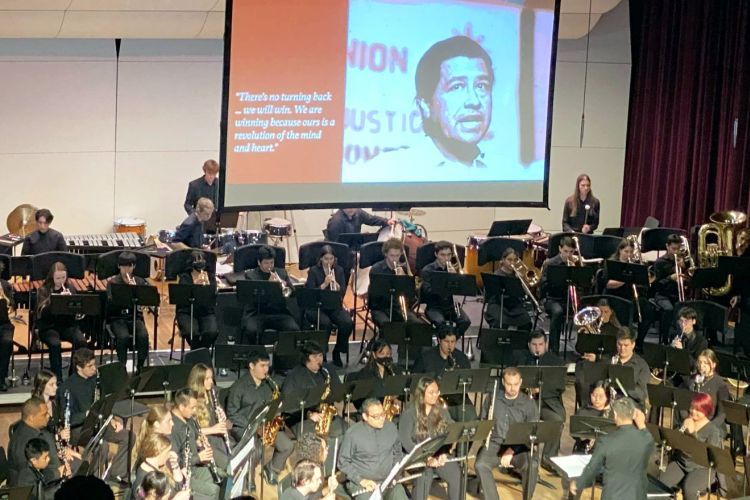 Pacific’s Wind Bands paid homage to civil rights leaders César Chávez and Rosa Parks during the bands’ fall, 2022 concert. Led by Pacific’s Professor Vu Nguyen and composer and conductor in residence Giovanni Santos, Pacific students performed an intentionally diverse range of compositions that centered societal struggles, celebrated cultures, and focused upon historic and ongoing social inequity. That experience resonated with students.