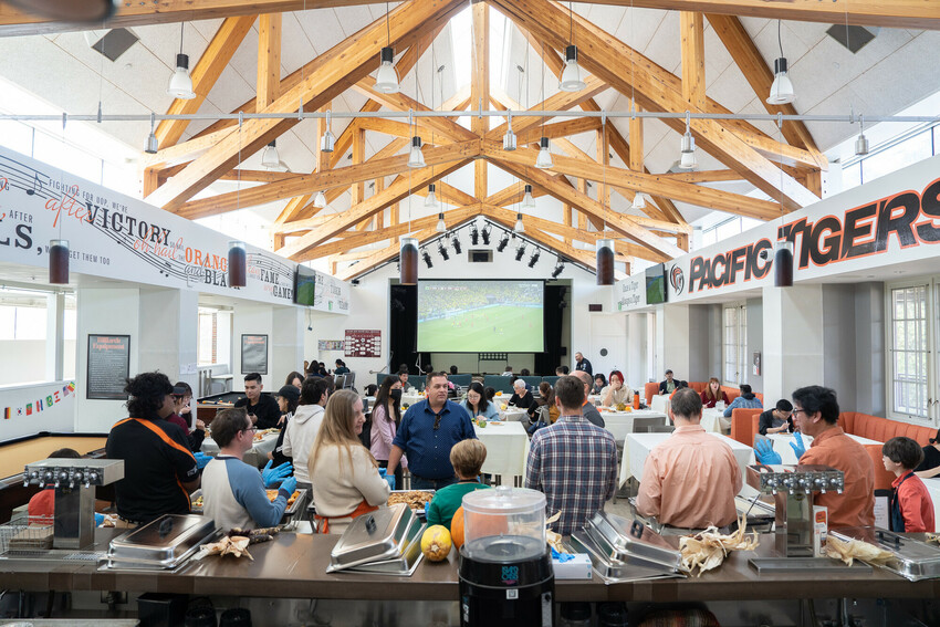 Faculty and staff volunteered to serve a traditional Thanksgiving meal to dozens of students who remained on the Stockton Campus for the holiday.