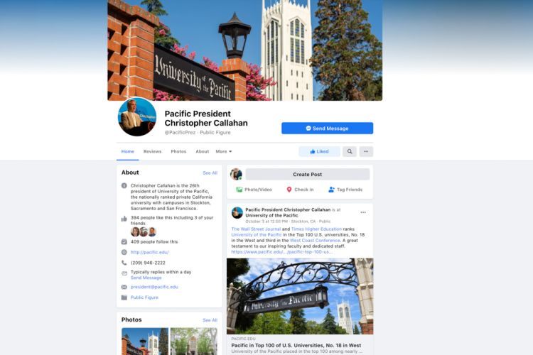 University of the Pacific President Christopher Callahan has launched a public Facebook page.
