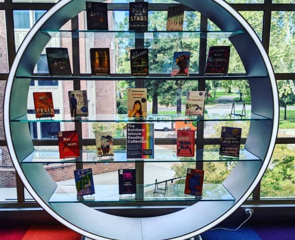 Located on the second floor of the Stockton Campus Library, the Rainbow Reading Resource and Study Room features a leisure reading collection of LGBTQ award-winning literature.